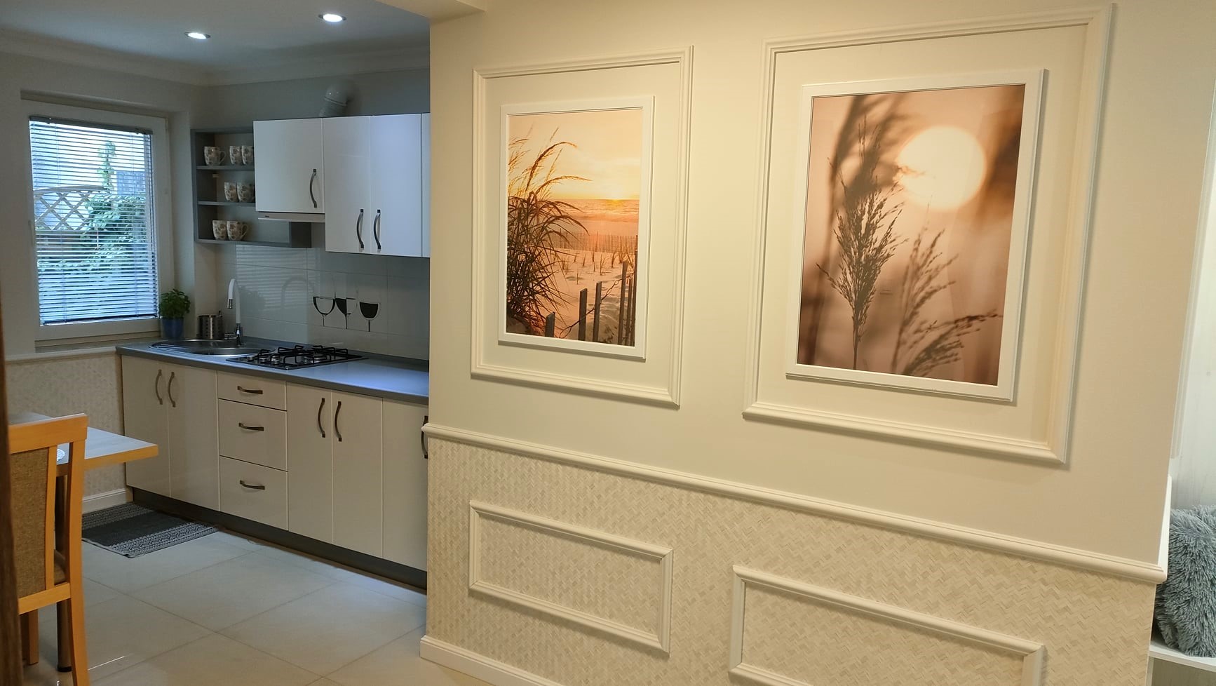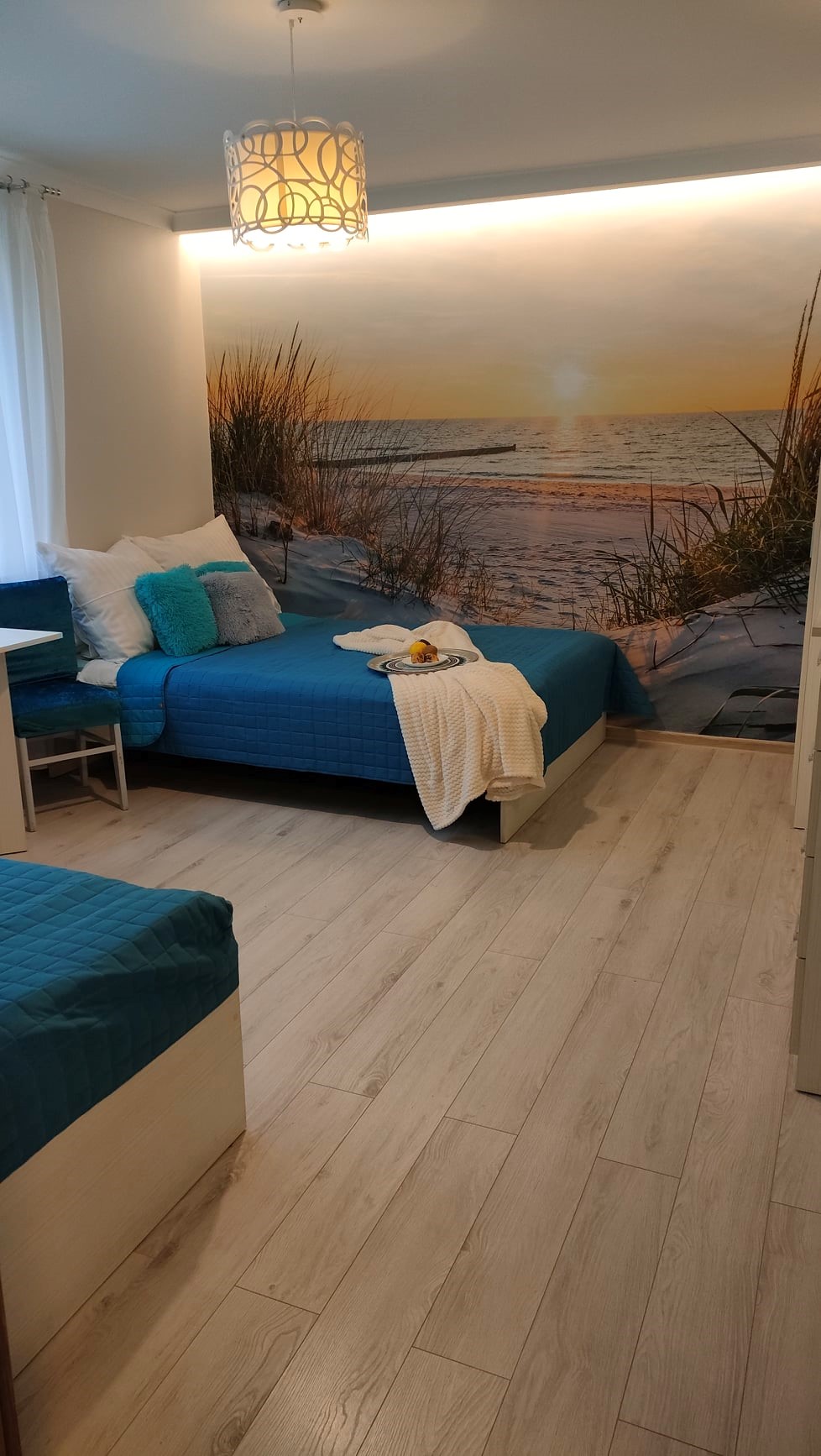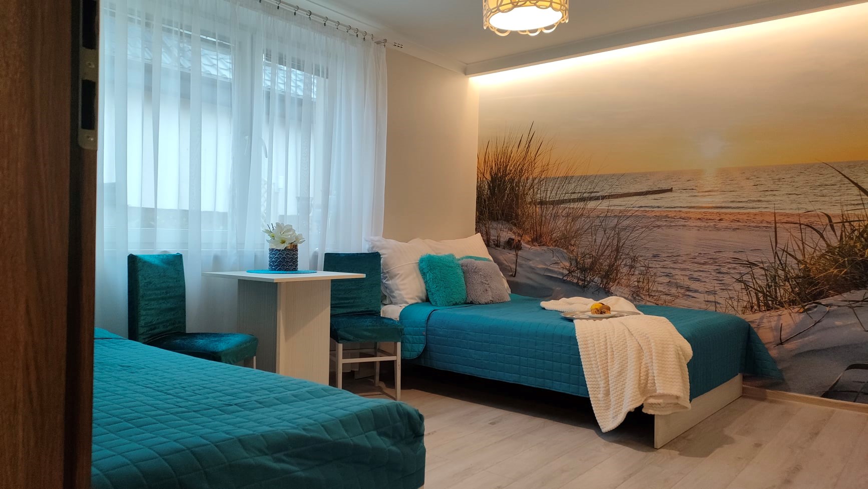Apartament rodzinny to nowe, dwu-pokojowe mieszkanie o wysokim standardzie, idealne dla rodzin lub grup przyjaciół szukających komfortowego miejsca do wypoczynku. Składa się z przestronnego holu, który prowadzi do dwóch dużych, jasnych pokoi zamykanych osobno, co zapewnia prywatność dla każdego mieszkańca. W obu pokojach znajdują się wygodne łóżka małżeńskie, a dodatkowo w każdym z nich umieszczono pojedyncze łóżko, co czyni apartament doskonałym wyborem dla większych grup. Każdy pokój jest na tyle przestronny, że lokatorzy mogą cieszyć się swoją własną przestrzenią do relaksu. Do dyspozycji jest również obszerna, w pełni wyposażona kuchnia, idealna do przygotowywania posiłków, oraz nowoczesna łazienka z eleganckim wykończeniem, która zaspokoi potrzeby nawet najbardziej wymagających gości. Apartament oraz miejsce w ramach obiektu łączy wygodę, funkcjonalność i estetykę, zapewniając przyjemny pobyt.
